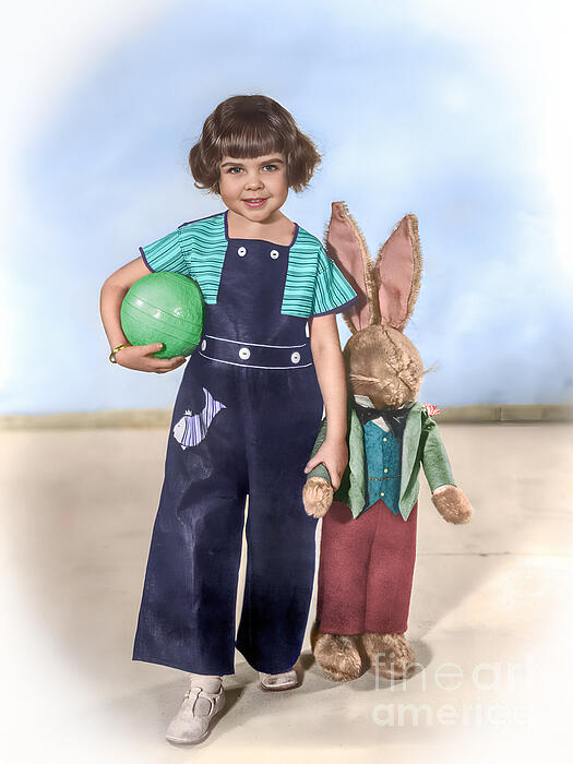 Experience the timeless charm of Darla, the beloved character from the classic television series 'The Little Rascals,' brought to life in vivid color. This meticulously colorized portrait captures Darla's endearing innocence and joyful spirit, inviting viewers to reminisce about the golden era of American entertainment.